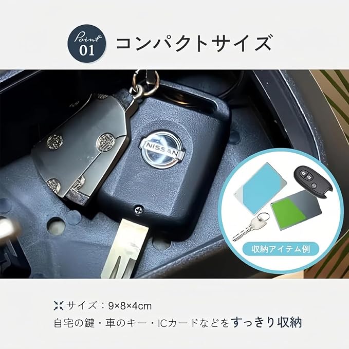 【コンパクトながら大容量】 サイズ:9 8 4cm。自宅の鍵・車のキー・ICカードなどをすっきり収納。