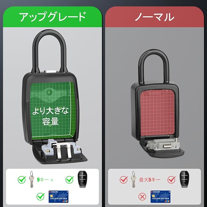 【大容量】他の壁面金庫は5~8本しか収納できませんが、このキー金庫は家または車の鍵を10本まで収納できます;外出する必要がある時、家の鍵、車の鍵、銀行のカードなどの小物をキー金庫に入れることができます