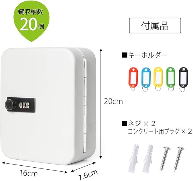 【付属品】:ネジ 2、コンクリート用プラグ 2、キーホルダー 20