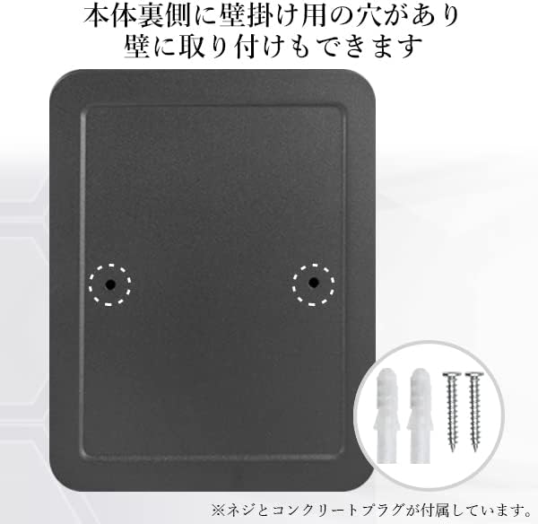 本体裏側に壁掛け用の穴があり、ネジとコンクリートプラグも付属されているから、壁にも取り付けられます。