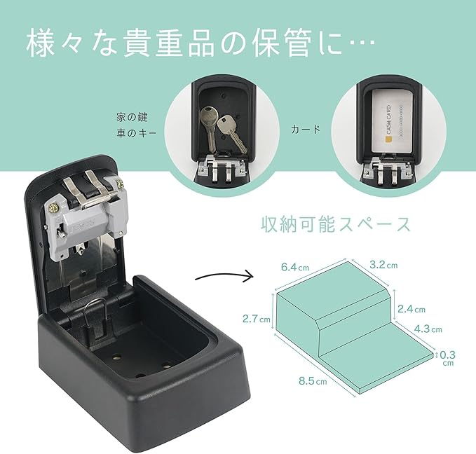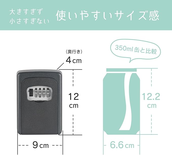【仕様】壁取り付けタイプ、4桁ダイヤル錠(任意変更可能)