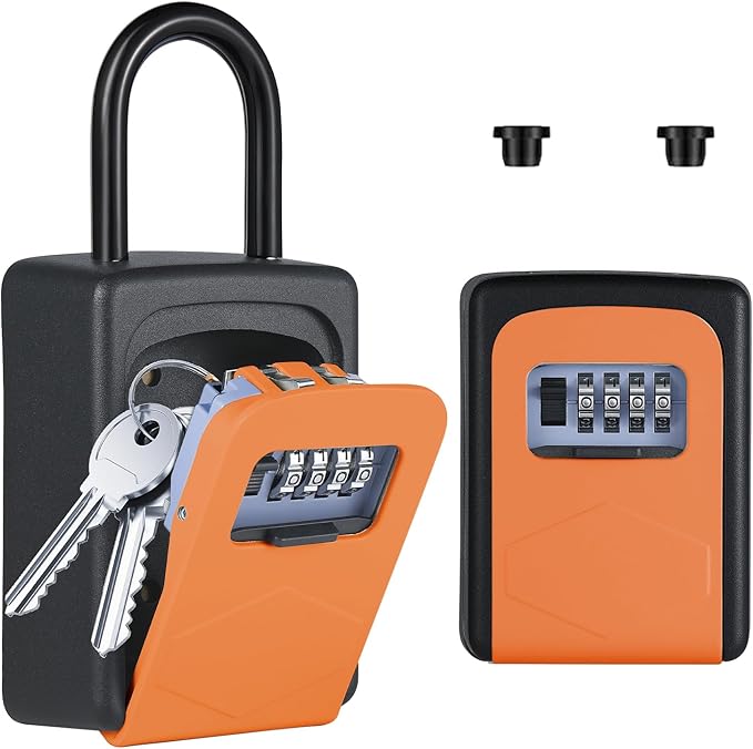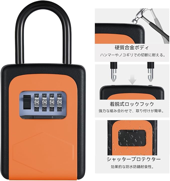 NAGE キーボックス 防水 壁掛け 4桁 スペアキーボックス 暗証番号 鍵入れ 鍵ボックス 屋外 大容量 防犯 盗難防止 倉庫 玄関 工事用 (U型、オレンジ)