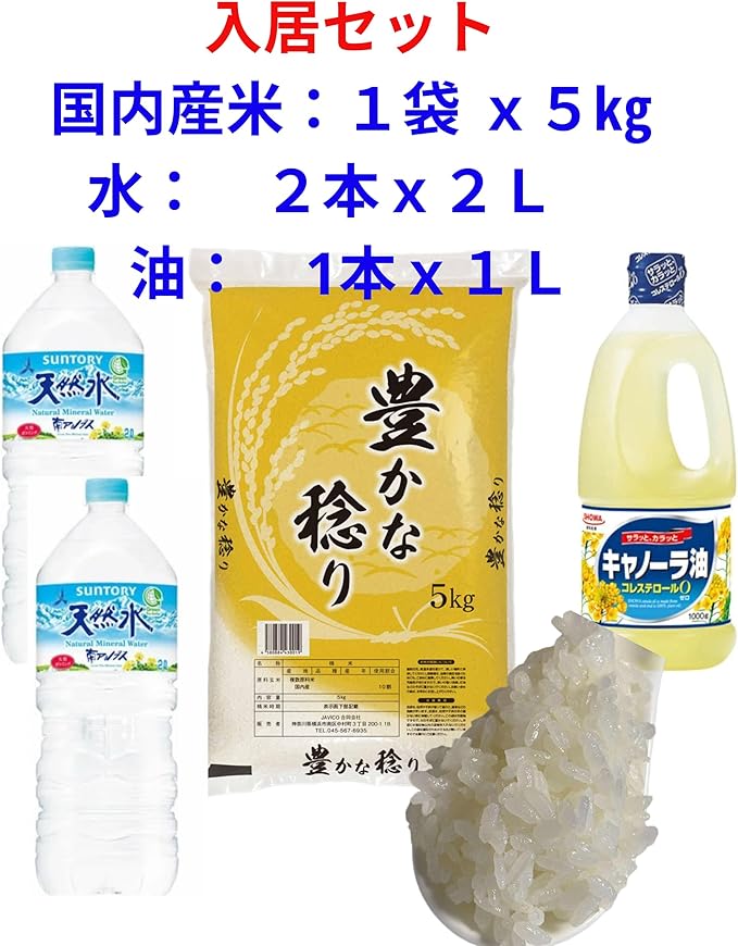 【JAVIET KAISHA】入居セット 国内産米 オリジナルブレンド米 5kg お水 2本x2L 油 1本1000ml (入居セット(米、水、油))