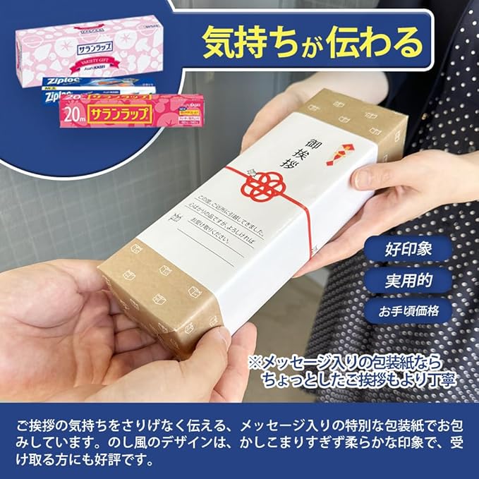 実用性重視: 毎日の生活で必ず使用するサランラップとジップロックの組み合わせで、どなたにも喜ばれる日用品ギフト