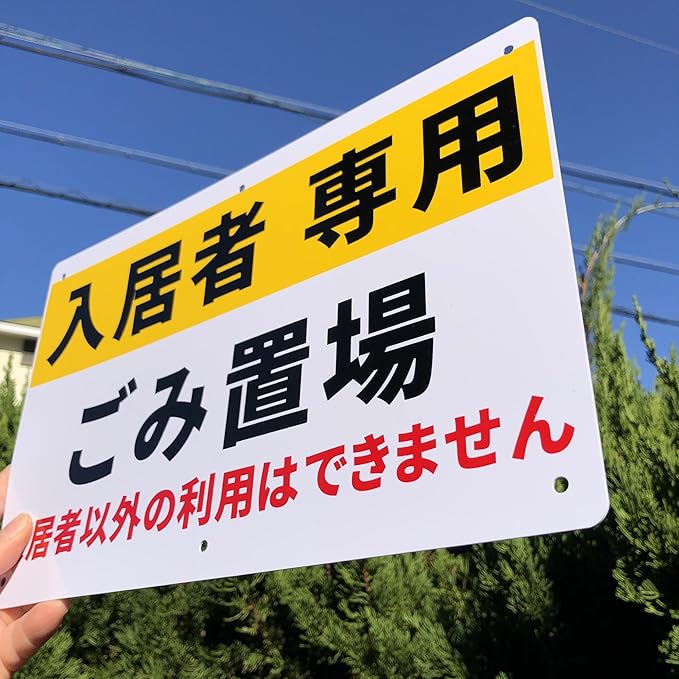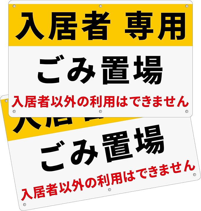 2枚 セット 注意看板「入居者専用 ゴミ置場」315 200 1mm 白塩ビ樹脂板 防水 屋内外両用 日本製PP (A-z47, (315 200mm) 2ピース)