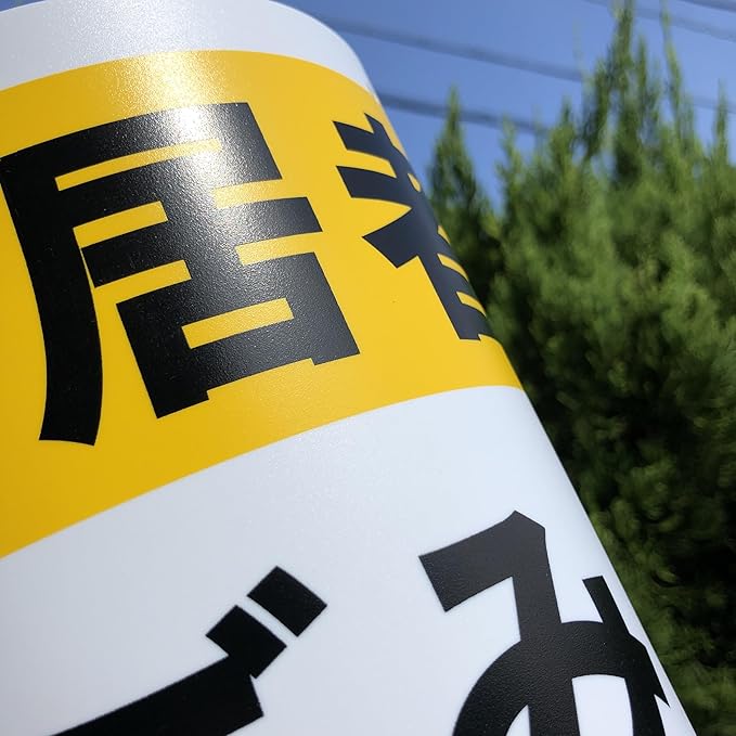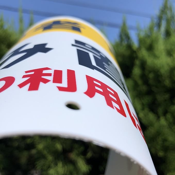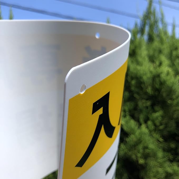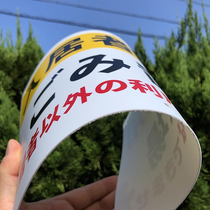 素材:PP(ポリプロピレン)樹脂板 (屋外対応) で曲げにも強く、電柱のような円柱の曲面にも取り付けが可能です。 防水仕様、耐候性に優れたポリプロピレン製の看板です。