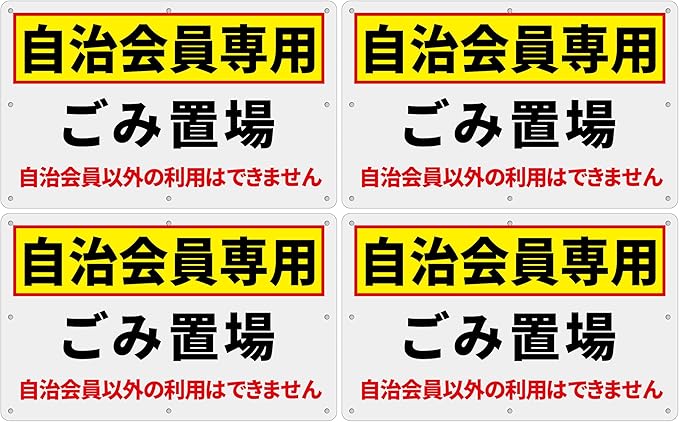 4枚 セット 入居者看板「自治会員専用 ごみ置場」注意看板 340 210ミリ PP樹脂板 ゴミ捨て禁止看板 簡単にインストールでき パネル看板 プレート看板 高視認性 防水 屋外対応 (D-p16, 4ピース)