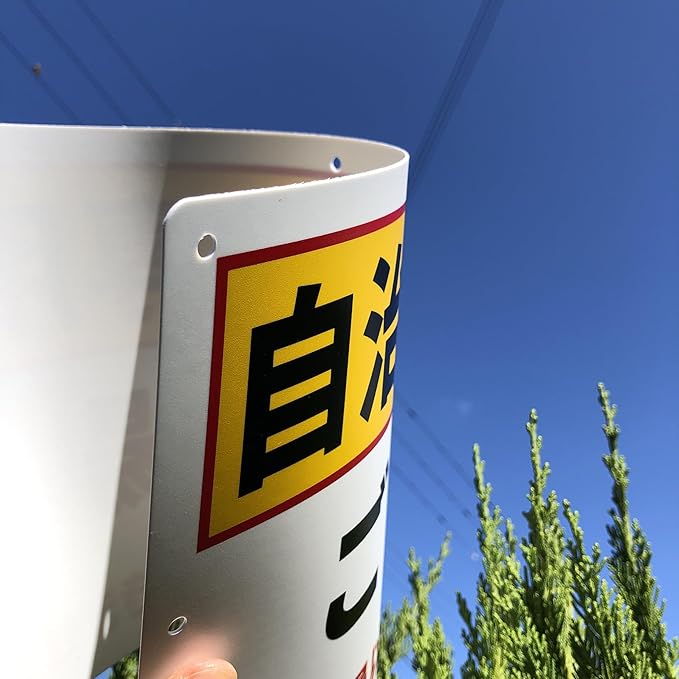 素材:PP(ポリプロピレン)樹脂板 (屋外対応) で曲げにも強く、電柱のような円柱の曲面にも取り付けが可能です。 防水仕様、耐候性に優れたポリプロピレン製の看板です。