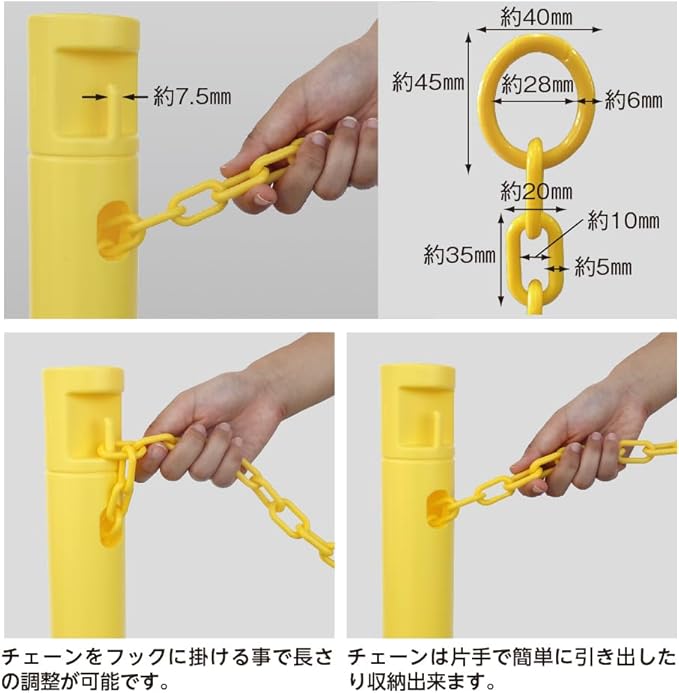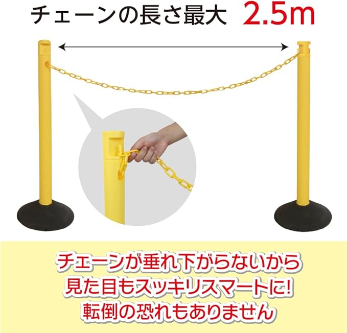 2.5Mのチェーンが収納できる、壊れにくいゴムベースのポール4本セットです。
