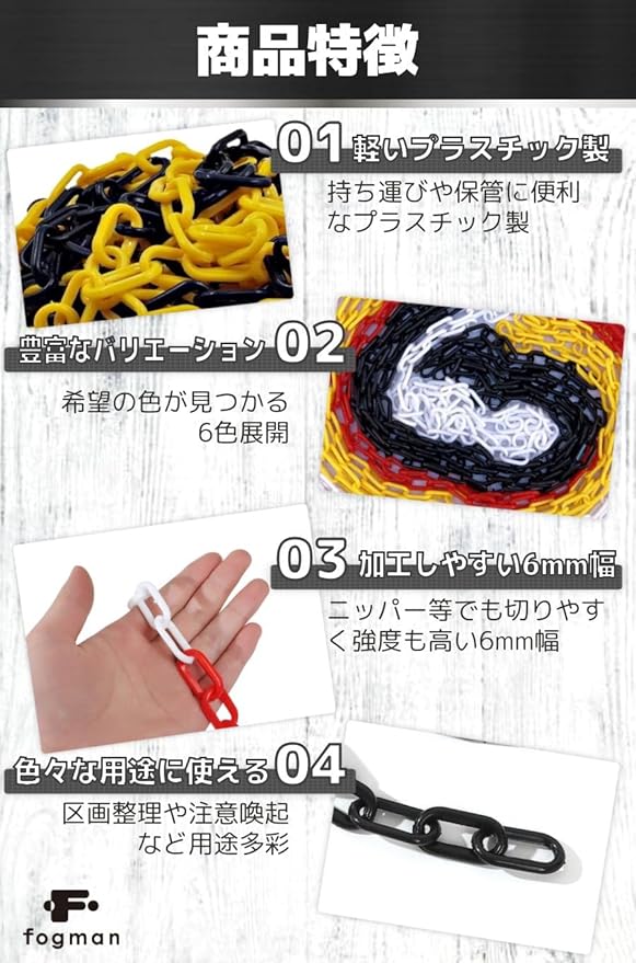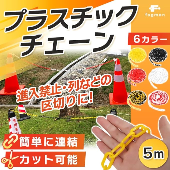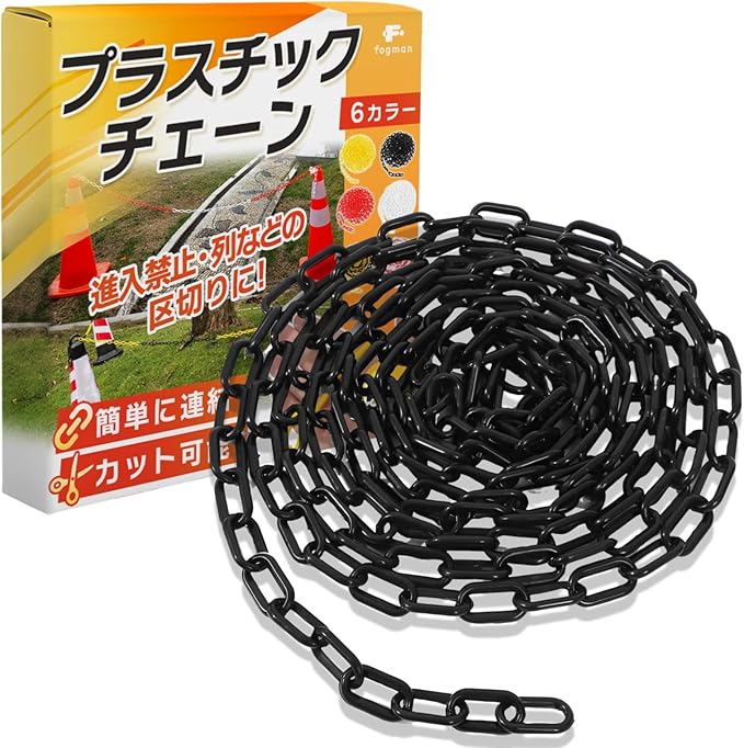 fogman チェーン プラスチック 鎖 駐車場 三角コーン 進入禁止 パーテーション 軽量 5m (ブラック)