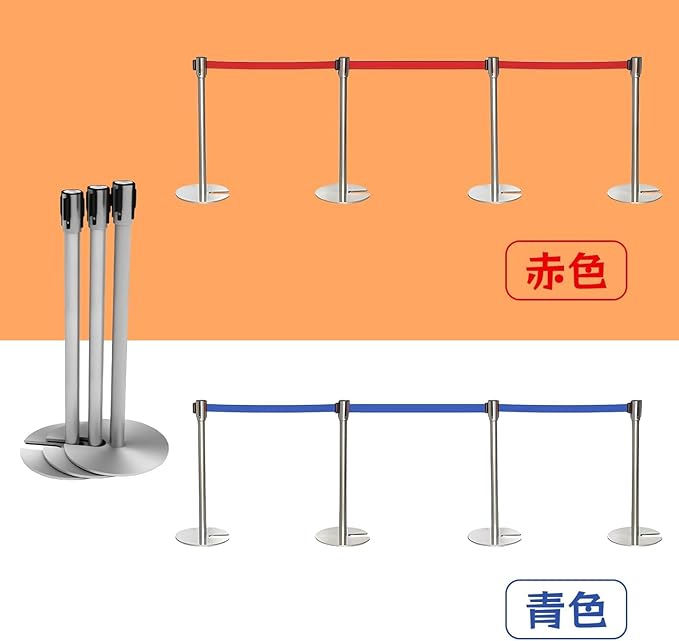 【モダンなデザインで空間をスタイリッシュに】:シルバー調の金属素材と鮮やかなブルーベルトの組み合わせが、どんな空間にもモダンで洗練された雰囲気を演出。オフィスやイベント会場、商業施設など、あらゆるシーンで高級感と機能性を両立します。スタイリッシュな見た目で、誘導や仕切りをスムーズに行えます。