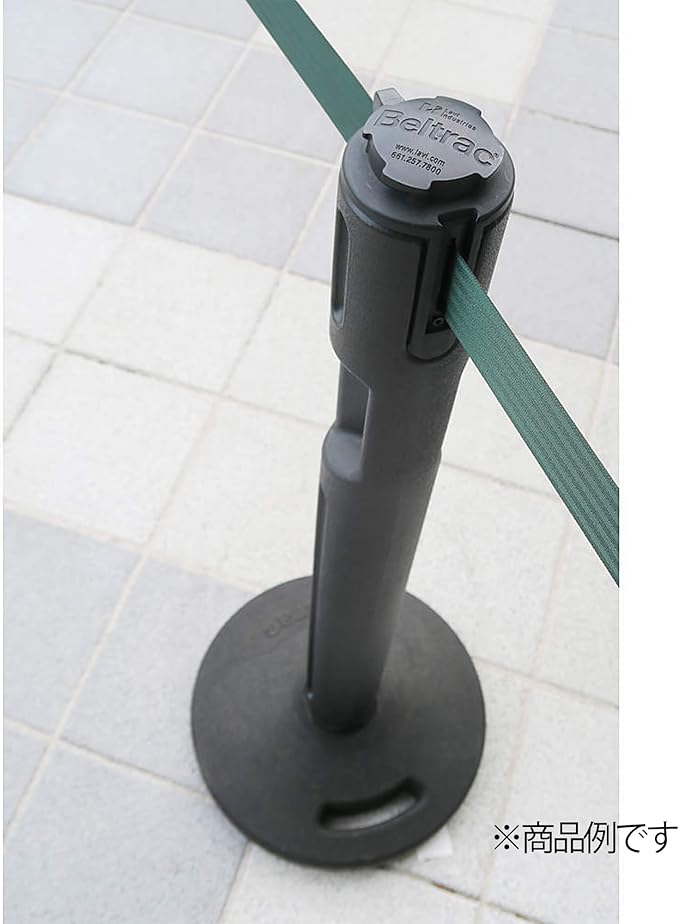 屋外での使用が可能なベルトパーティションです。 再生ゴムタイプはベースと支柱の取り外しが組立後も可能です。