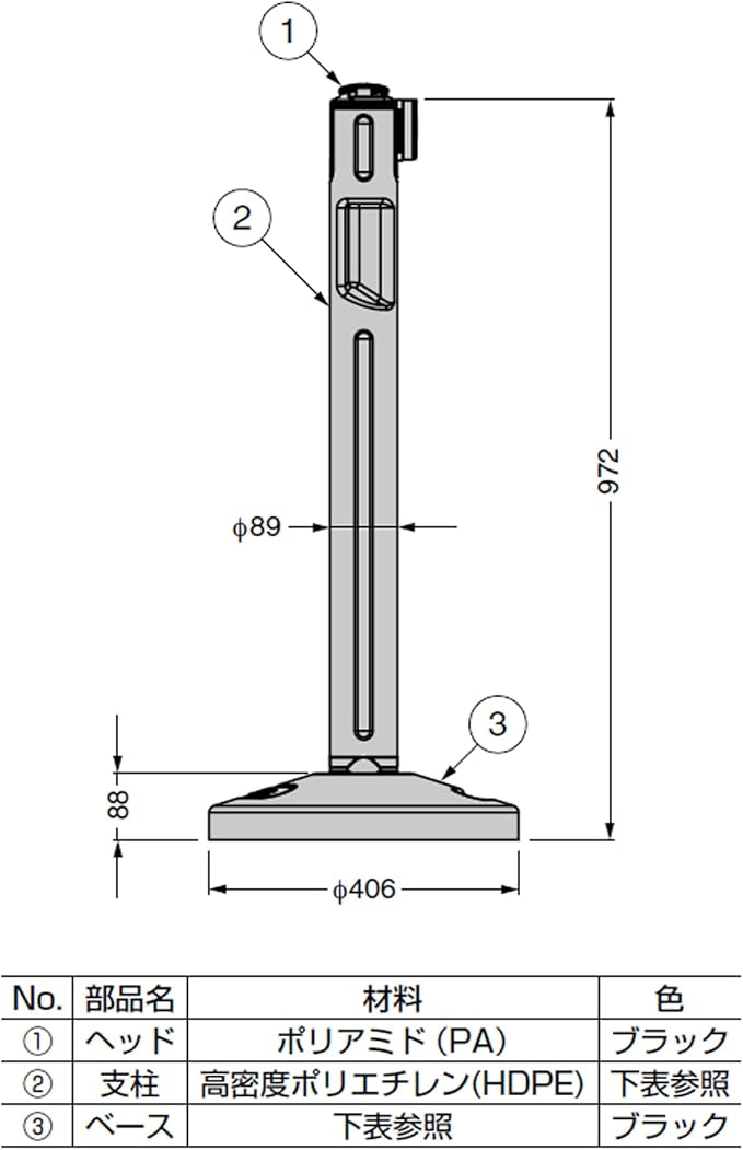 本体サイズ:H972 Φ406mm(支柱H884 Φ89mm)