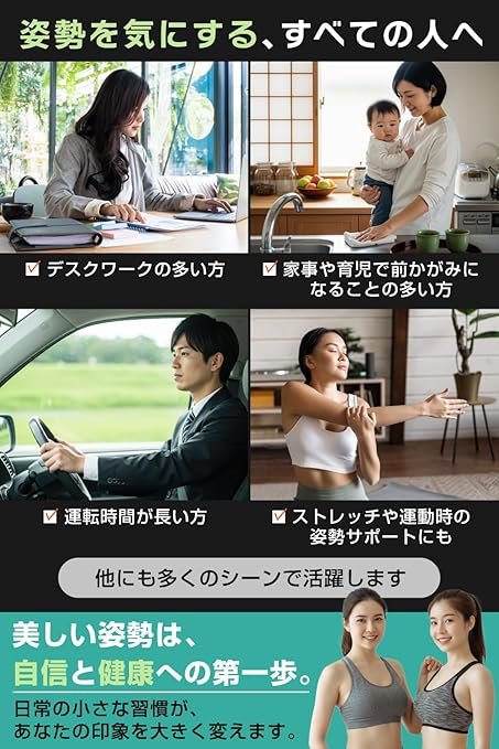 【幅広いシーンで活躍】 家事や運転、ウォーキング、ストレッチなど日常のあらゆる場面でお使いいただけます。