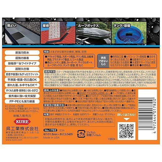 KURE(呉工業) ゴリラテープ エクストリーム ウォータープルーフブラック 101.6mm 3.04m 強力多用途防水補修テープ 1782
