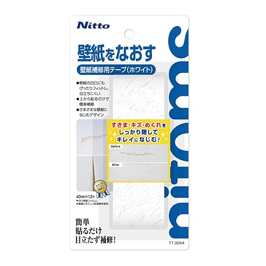 ニトムズ(Nitoms) 壁紙補修用テープ ホワイト 白 貼るだけ 簡単 すきま キズ めくれ 幅40mm 長さ1.2m TT0054