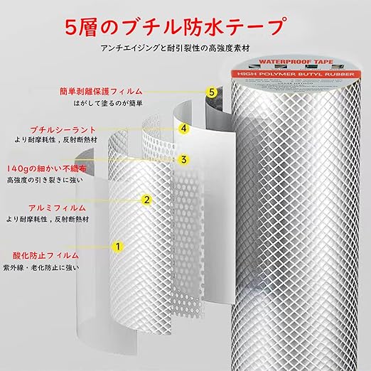 【高純度 防水耐熱原料】水漏れ専用補修テープ。純粋なブチルゴムでできており、安全で環境に優しく、無毒、無刺激臭。不純な材料や粗悪な材料を使うよりも伸び率が高く、長持ちします。【HOT保証】アルミブチルテープ 防水は何にか不具合・初期不良があれば製品保証を行いますのでご安心してお買い求めください。