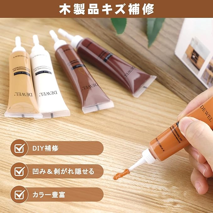 DEWEL フローリング 補修 補修クリーム 木製品キズ補修 床補修 ドア補修 キズ消し 傷消し 傷隠し 木製家具補修 (イエローサンダルウッド)