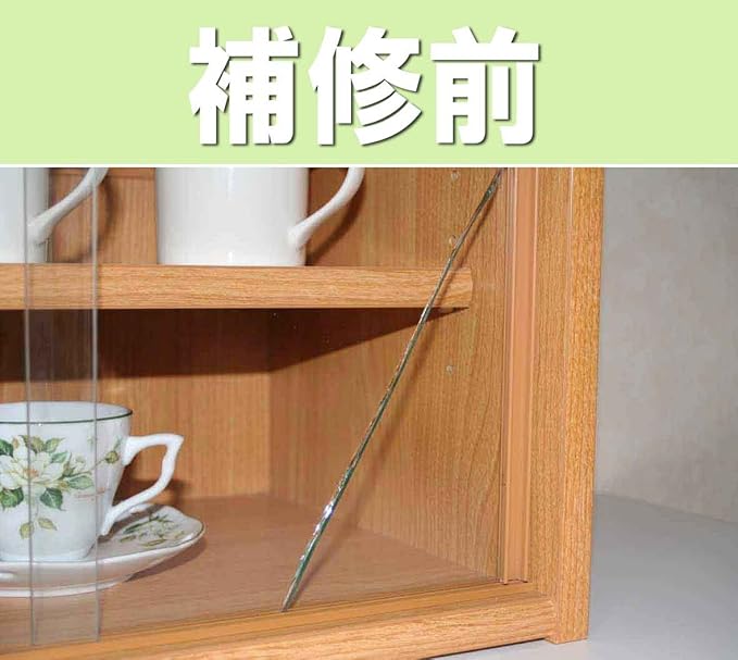 窓ガラス、サイドボード、食器棚などのガラスのヒビに、上から貼るだけの簡単補修