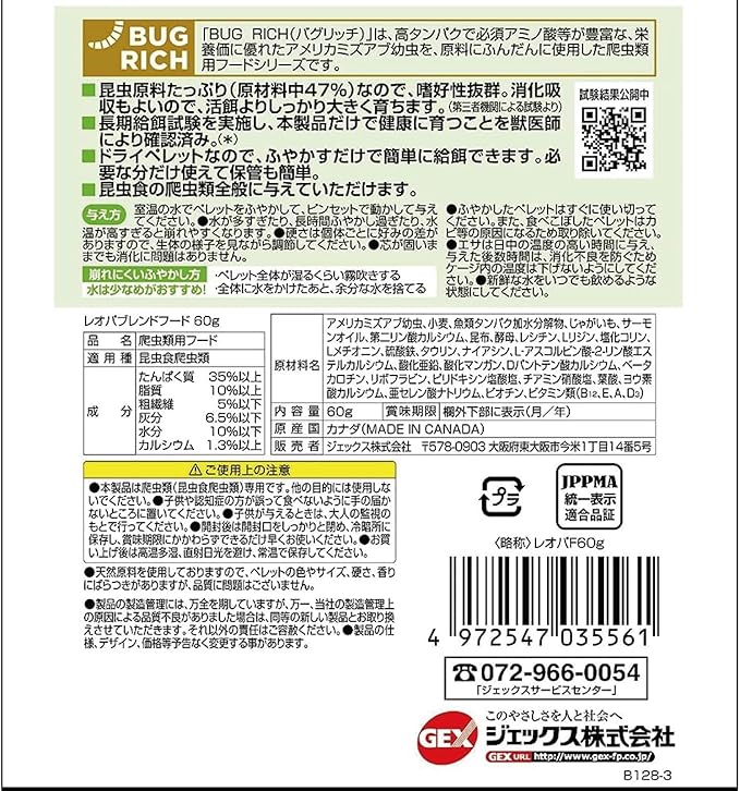 レオパに必要な昆虫栄養たっぷり!! 昆虫食の爬虫類全般に!!昆虫の栄養そのまま! 昆虫原料(アメリカミズアブ)47%!!