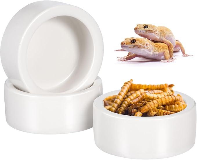 Toddmomy 爬虫類用 セラミック フード&ウォーターボウル (3個セット / ホワイト)