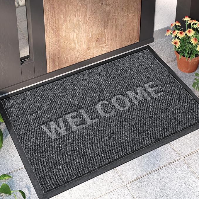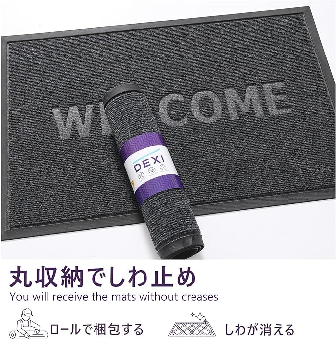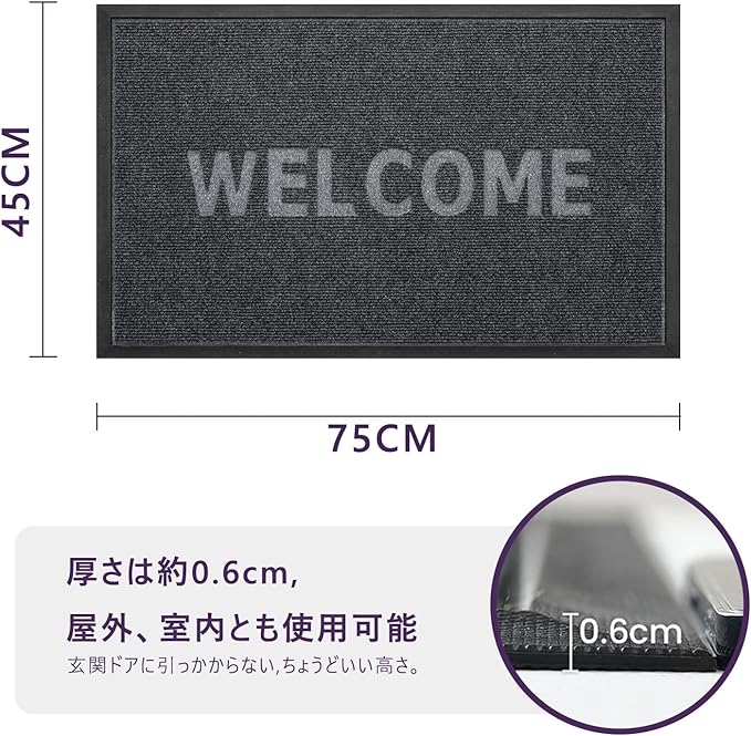 【耐久性が目立つ機能】玄関マットの枠は、重いゴムを加工します。質がよくて、割れません。色んな天気にたえます。季節を問わずに、一年中も使えます。すっきりとしたWELCOMEデザインが、玄関をシンプルで洗練された印象に整えます。さまざまなインテリアになじみやすく、使いやすい玄関マットです。