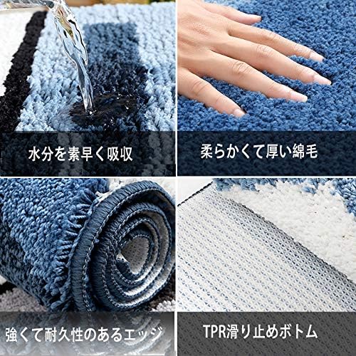 Joy-yong玄関マット室内おしゃれ 風水 北欧 バスマット 洗面所 マット 浴室足ふきマットふわふわ 柔らかい 速乾 吸水 滑り止め 洗える 洗濯機 丸洗い ラグマット業務用 家庭用 (60cm*40cm, 水の波紋は運を助けます-青)