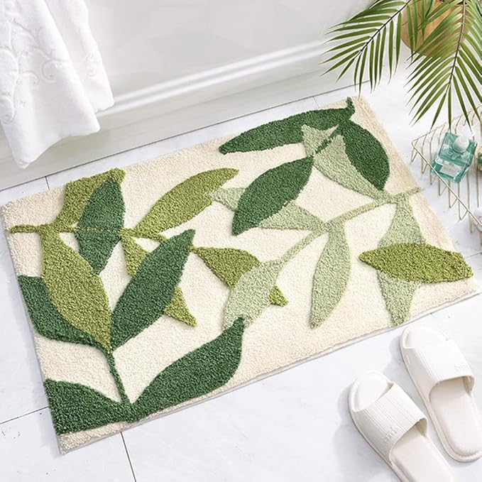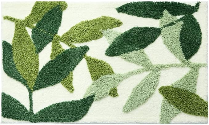 SYitong玄関マット 室内 おしゃれ 北欧 ドアマット バスマット 足拭きマット グリーンリーフ 廊下 洗面所 業務用 家庭用 ふわふわ 柔らか 泥落としラグ 滑り止め 吸水 洗える 速乾 抗菌防臭 耐磨耗性 40 60CM 50 80CM (グリーン1, 40 60cm)