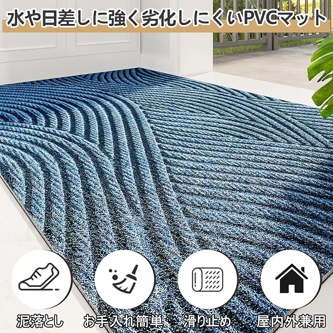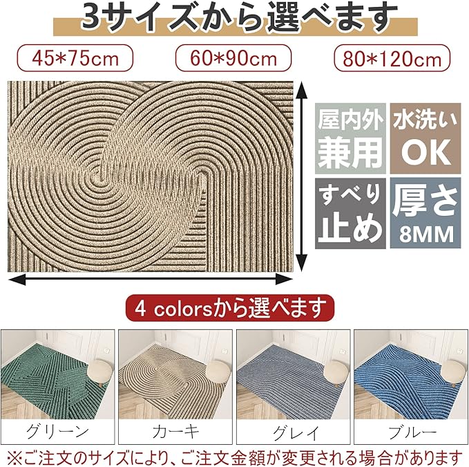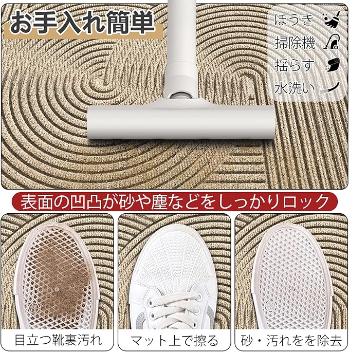 玄関マット 北欧 室内 屋外 泥 砂落とし 水や日差しに強く お手入れ簡単 水洗い pvc 玄関 マット 風水 おしゃれ 玄関外マット 店舗用玄関マット業務用玄関マット 滑り止め付き 足拭きマット 45 75cm カーキ