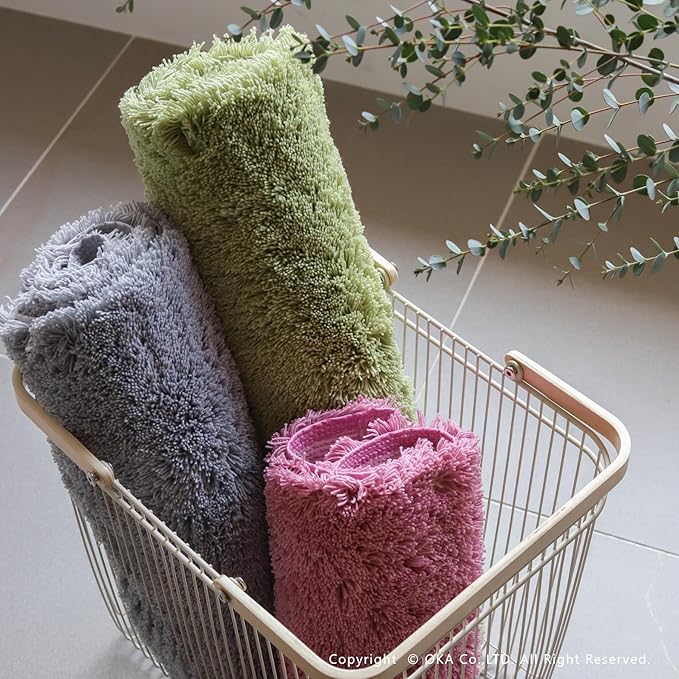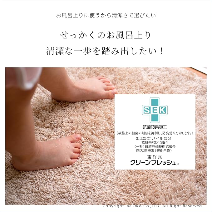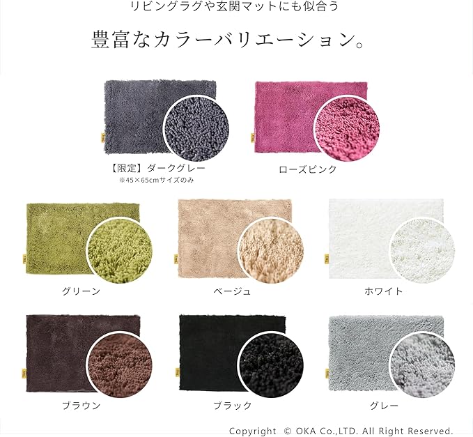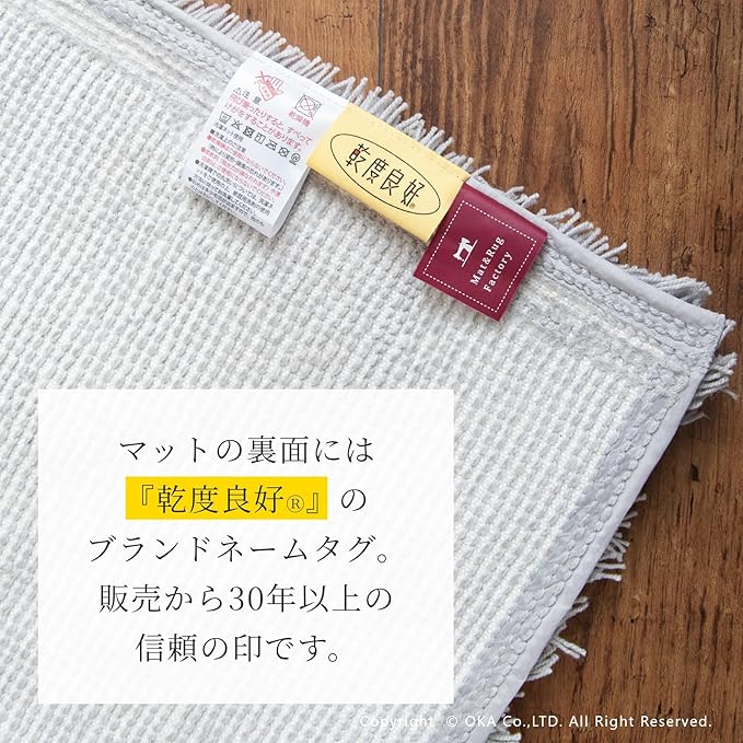 オカ株式会社が独自開発した特殊構造繊維「乾度良好(かんどりょうこう)」は25年を超えるロングセラーのバスマットです。