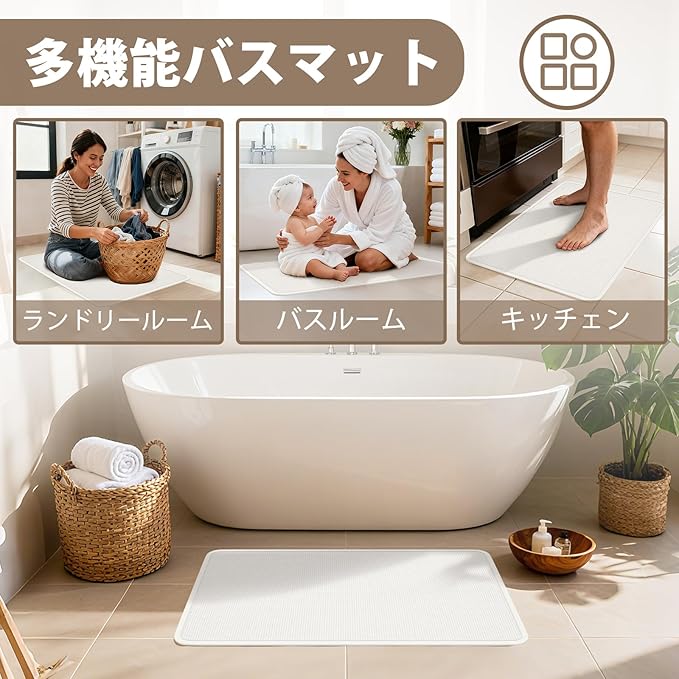 ✨ 【耐久保証】12ヶ月品質保証付き。検査機関認定の バスマット。365日使用可能なお風呂マット。珪藻土 バスマットの長寿命を約束。⚠️ 【重要注意点】※色調は照明環境で変化。吸水持続のため月1回の丸洗い必須。バスマット設置時は平坦な床面でご使用。返品条件は商品詳細ご確認を。