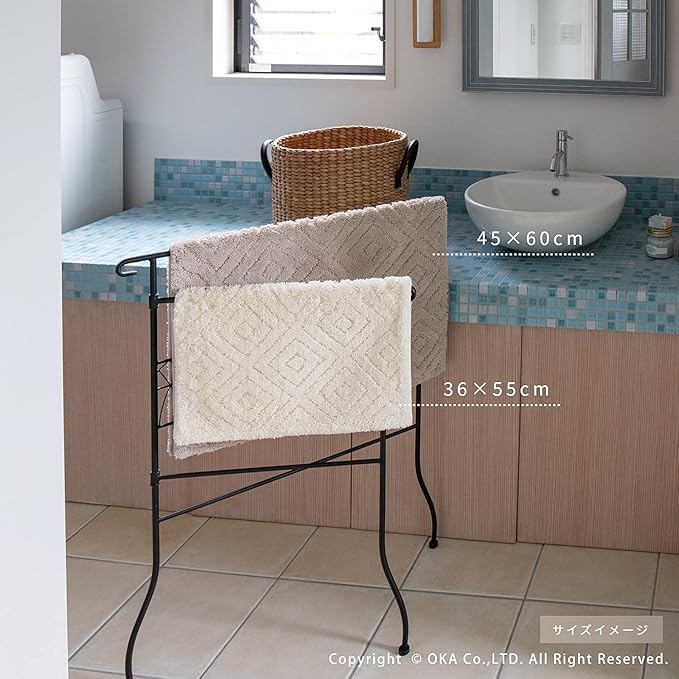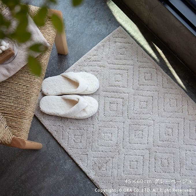 オカ(OKA) 乾度良好ピュール バスマット 約36cm 55cm グレーベージュ (お風呂マット 大判 浴室 おしゃれ 洗面所 足ふきマット 抗菌 防臭 吸水 速乾 洗える)