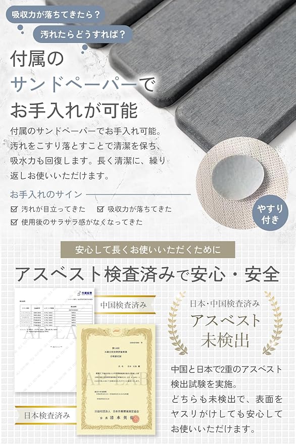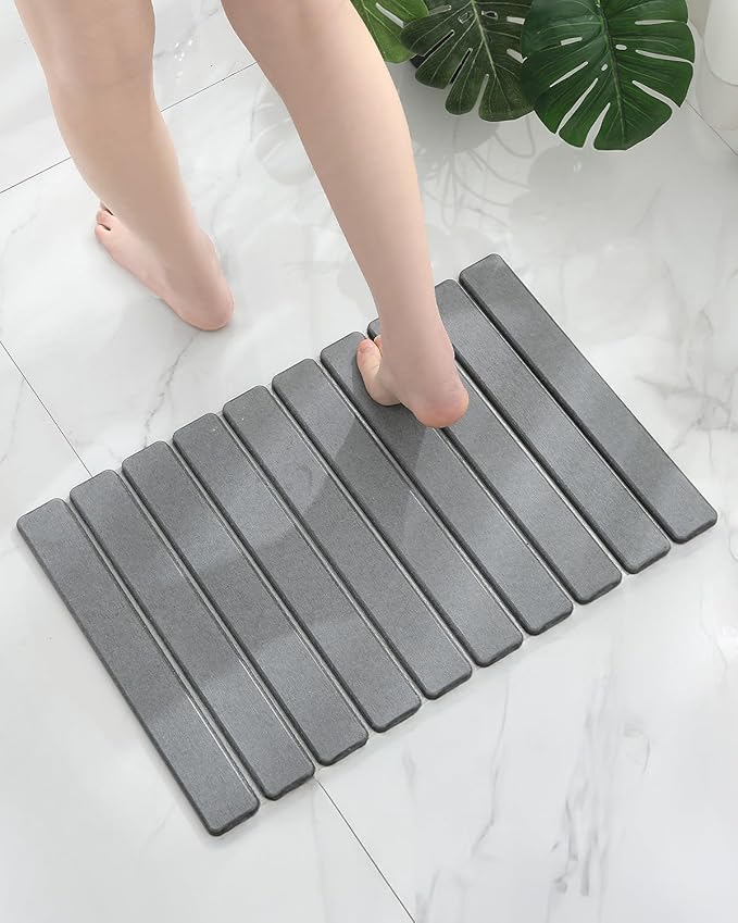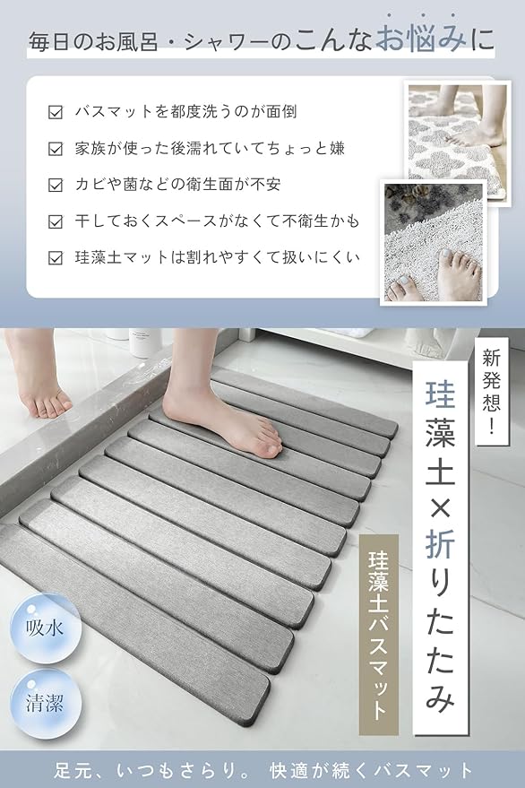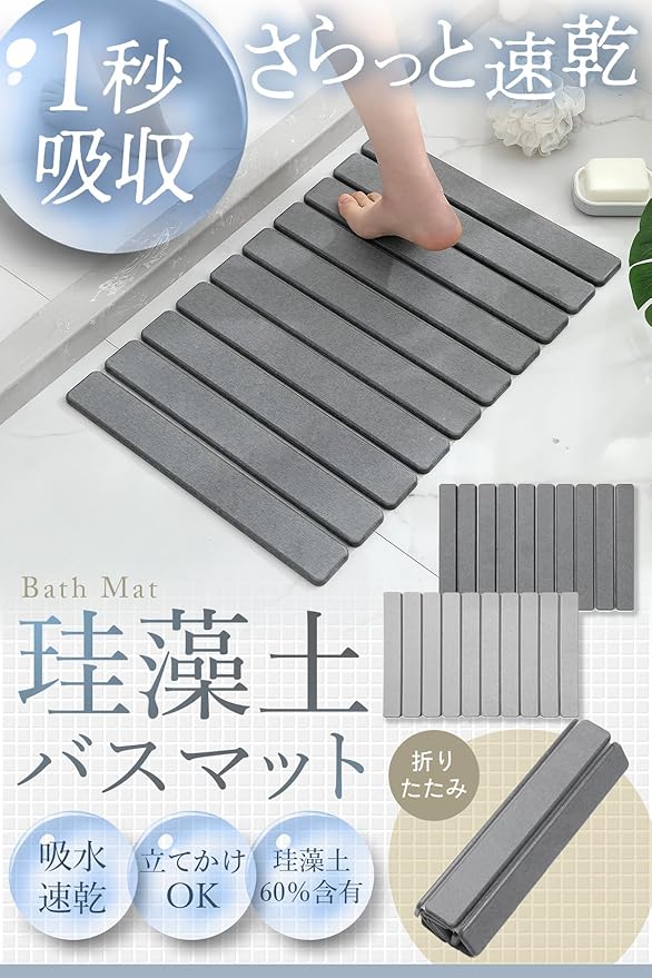 珪藻土バスマット 【アスベスト検査済み】バスマット 珪藻土 洗える マット 折りたたみ式 速乾 吸水 防カビ 滑り止め 耐久性 お風呂マット 足拭きマット すのこ型 (ダークグレー)