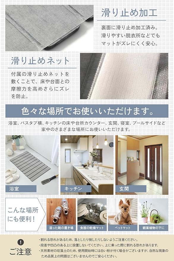 ✅ 【マルチに使える40 60cmサイズ】 使い勝手の良い大きさなので、浴室マットとしてはもちろん、洗面所やキッチンマット、ペット用マットとしても活躍。丸めたり折りたたんだりもできるので、収納や干すときにも便利なバスマットです。