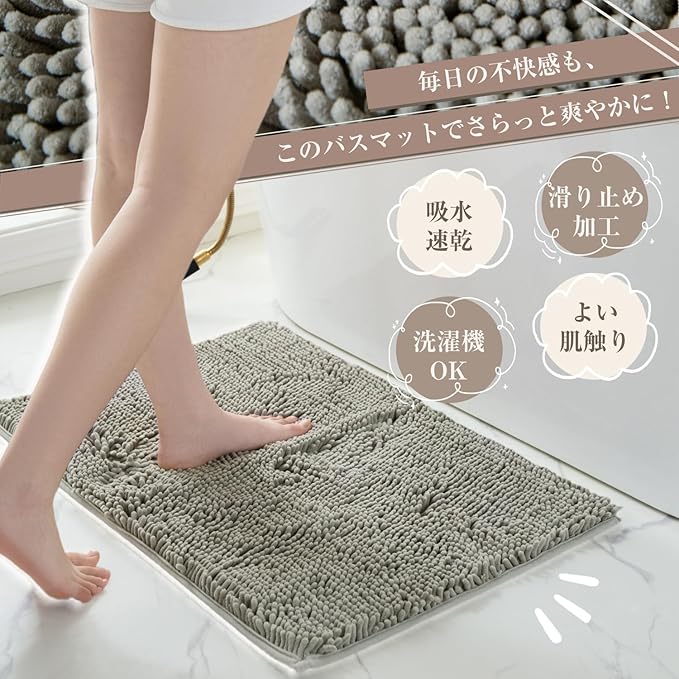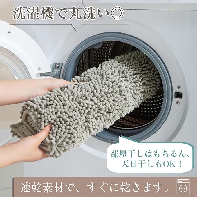 ✅【丸洗いOK・お手入れ簡単】 洗濯機でそのまま丸洗いできる洗えるバスマット。毛抜け・色落ち・シワになりにくい耐久設計で、いつでも清潔をキープ。乾燥機にも対応し、忙しい毎日でもお手入れ簡単。速乾バスマットとして毎日快適に使えます。