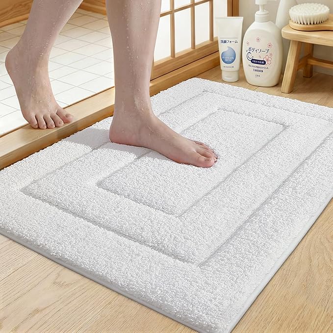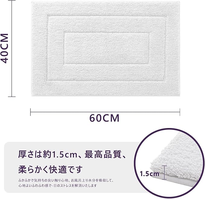 DEXI バスマット お風呂マット 速乾 足拭きマット 滑り止め 高吸水力 洗える マイクロファイバー 浴室 洗面所 バスルーム 40 60cm ホワイト