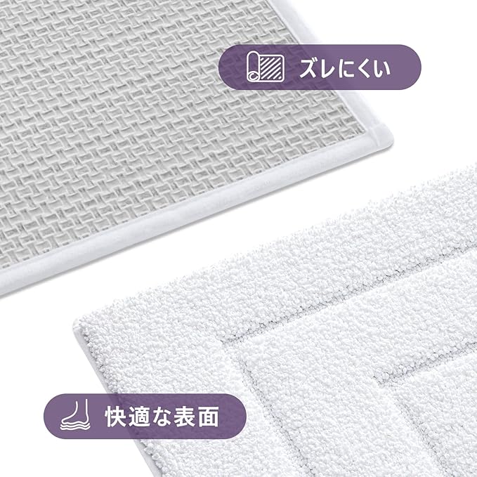 【柔らかい肌さわり】マイクロファイバー素材で、ふわふわ気持ちいい肌さわりを感じします。マットに立ち上がると、ソフトな毛が足裏を包んで、爽やかで、踏み心地がいいです。そして、冷たくなくて、床の寒さを感じしません。一日中の疲れをすば早く解散します。