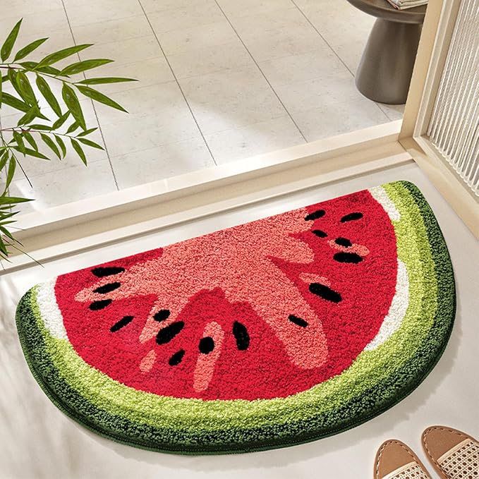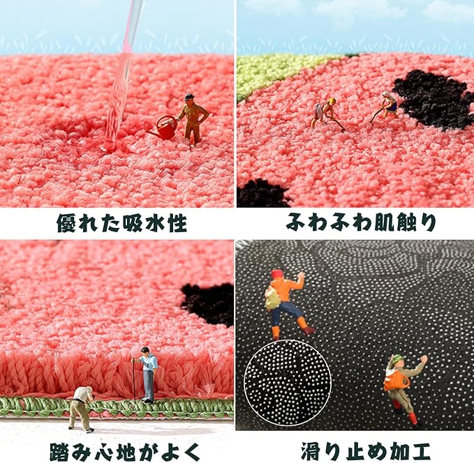 バスマット 滑り止め 足ふきマット 洗える 吸水速乾 玄関 洗面所 キッチン お風呂マット 快適 かわいい やわらか 40*60cm (スイカ)