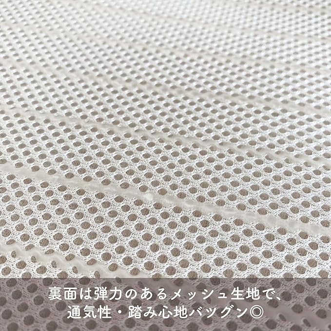 肌触りの良いポリエステル糸&弾力のあるメッシュ生地で快適な踏み心地。