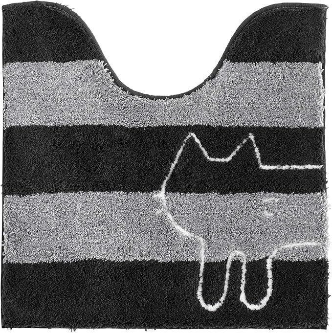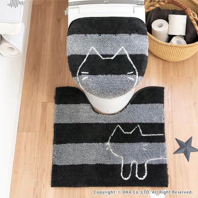 オカ(OKA) うちねこ レギュラートイレマット 約 60 cm 60 cm グレー (洗える おしゃれ 猫 可愛い ボーダー)