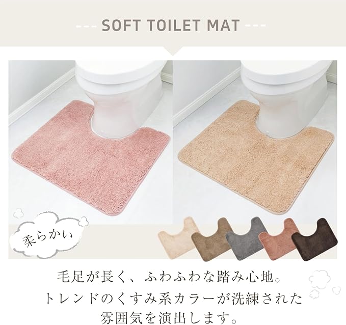 【洗濯機で丸洗い可能、毛が落ちにくい仕様】 トイレマットが洗える設計で、お手入れが簡単。繊維が抜けにくく、清潔な状態を長く保てます。また、拭ける トイレマットとしても扱いやすいため、水ハネや汚れもサッと拭き取ることができ、日々のお掃除もスムーズに行えます。