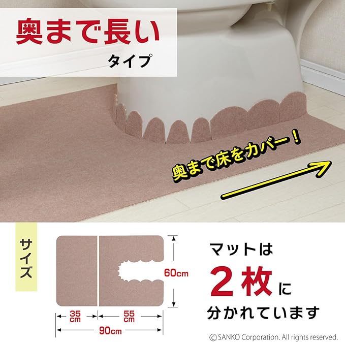 ・薄くて、ズレないマットでつまずかないからお掃除ラクラク ・奥行の長さをお好みで調整できるからどんなお手洗いにもぴったりサイズに合わせられる ・撥水加工済みなので、汚れをふき取りやすい