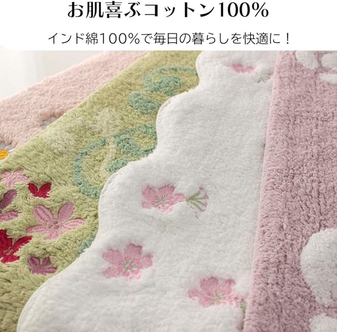 インド綿100%。お肌喜ぶ快適トイレマットです。程よい厚みがございます。 カラーも豊富なので、トイレを簡単にイメージチェンジできます。 ネットに入れてお洗濯も可能です。毎日の暮らしに快適を。【サイズ】60 60cm 綿100%