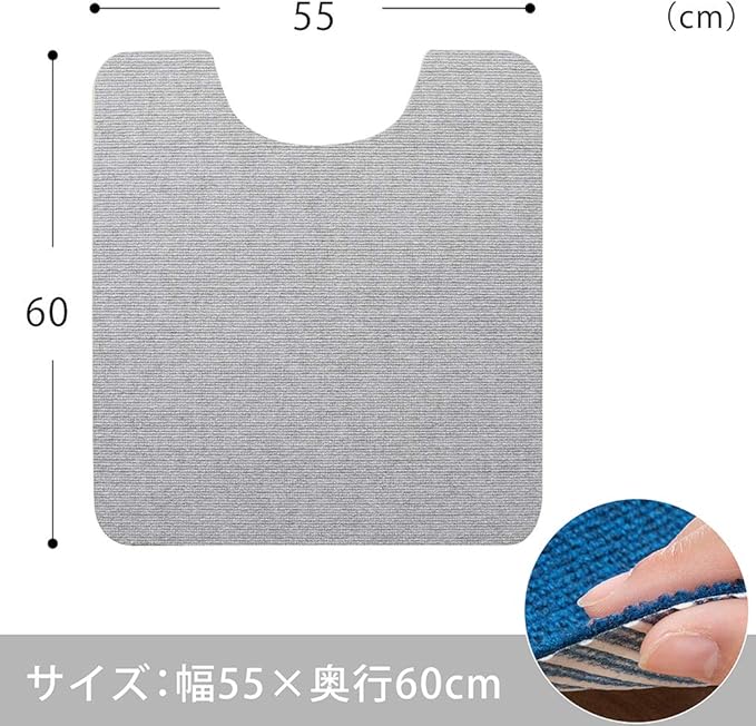 Sanko 【日本製 消臭 洗える】 サンコー ずれない トイレマット 床汚れ防止 おくだけ吸着 ライトグレー 55 60cm PF-104