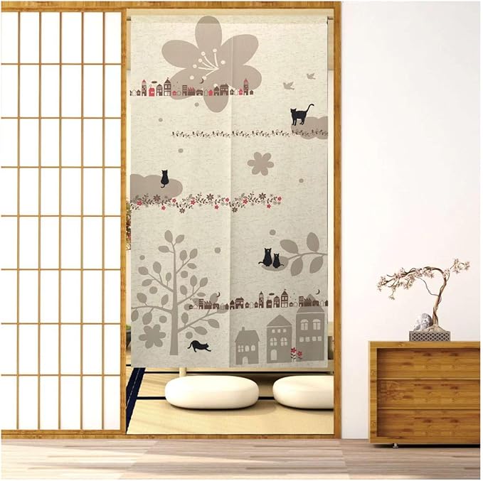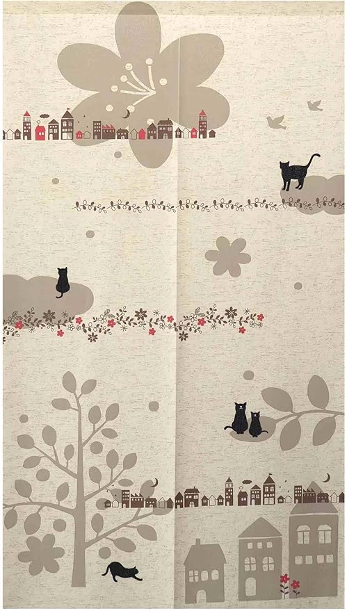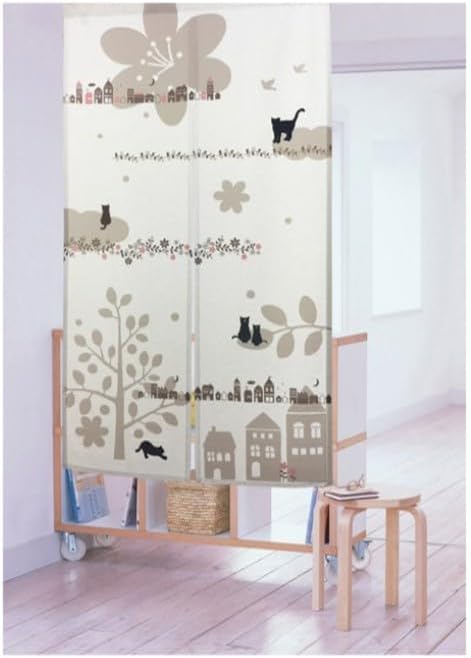 のれん 暖簾 おしゃれ 可愛い 北欧風 ネコ柄 間仕切りカーテン ロング 目隠し 遮光 玄関 階段 廊下 リビング 脱衣所 お風呂 戸口カーテン プライバシー保護 ドア 仕切り (猫・ベージュ, 幅85丈150cm) 82333