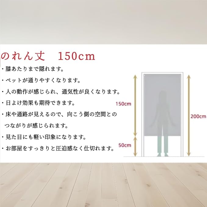 【用途】リビング、玄関、階段、廊下、脱衣所の間仕切りや目隠しにいろいろな場所、いろいろなシーンでお使いいただけます品の良いのれんです。プライバシーも守れます。お部屋のインテリアとしてはもちろん、飲食店、居酒屋等の商業施設によく合うのれんです。海外のお土産、プレゼントにも喜ばれます。