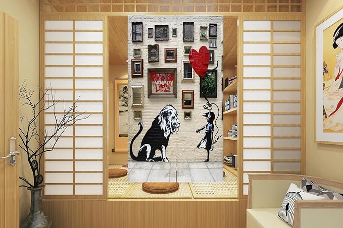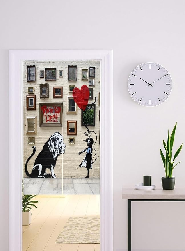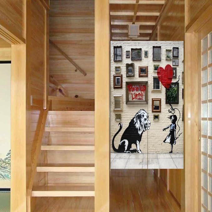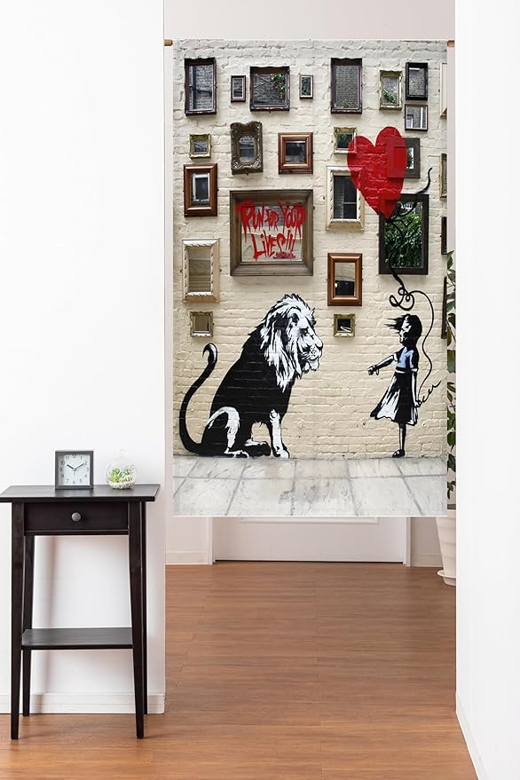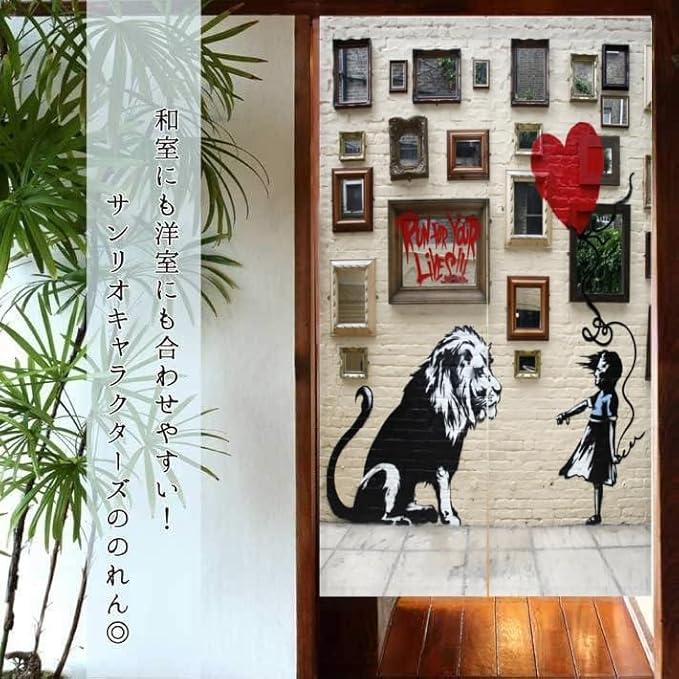 のれん 暖簾 バンクシー ゆ 温泉おしゃれ 遮光 北欧 簡単 目隠し 見えにくい 玄関 温泉 旅館 ホテル 廊下 お風呂 洗面所 トイレドアカーテン キッチン リビング 飲食店 出入り口 幅85丈120cm,ライオン