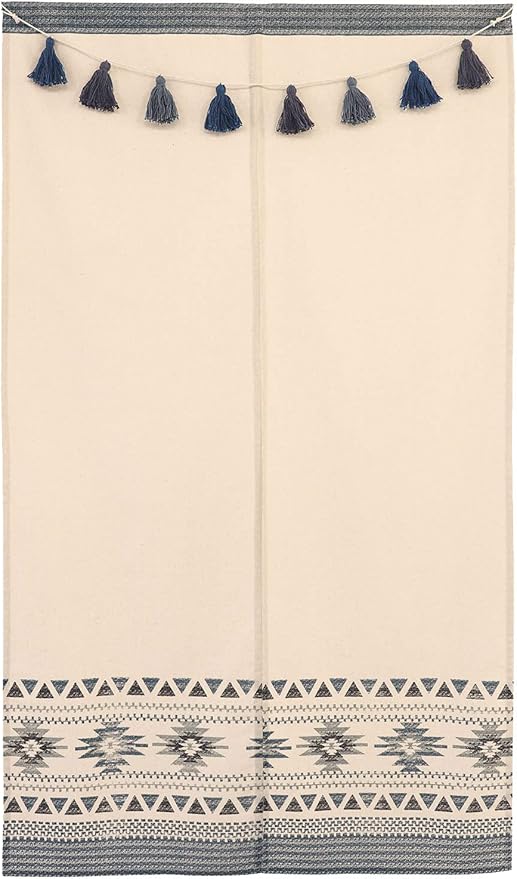 Sunny day Fabric のれん ブルー 約85cm 150cm オル タッセルガーランド付 オルテガ柄 ネイティブ柄