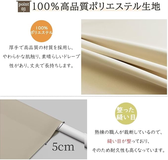 【遮光・防寒保温・省エネ】夏:密度の高い繊維が太陽光紫外線の侵入を抑制し、高い断熱性を発揮する。冬:密度の高い繊維が冷気や隙間風の侵入を抑制し、保温性を発揮する。遮光性も防音性もあり、シンプルカラー生地なので、洋風、北欧風、和風、そしてモダンなお部屋によく合います。