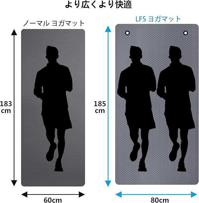 LFS ヨガマット 185*80mm 幅広 厚さ10mm トレーニングマット エクササイズマット ヨガ ピラティスマット 防音マット 高密度 ニトリルゴム 滑り止め ゴムバンド 収納ケース付き